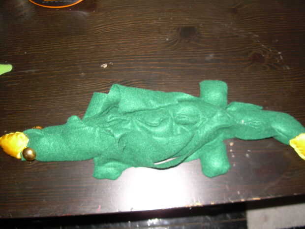 PIN y coser al cuerpo. Deja la boca abierta, incluso puedes recortar una forma de pico como una cubierta para agregar una vez el cuerpo se llena.