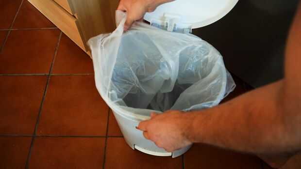 Apuntalar una bolsa de plástico de la hoja mientras se llenan de hojas es mucho tiempo.  Y la succión creada por la eliminación de las bolsas desde el bote de basura tiende rasgar la parte superior de la bolsa.  Simplemente retire la parte inferior d