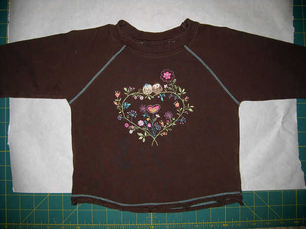 mis hijas han superado un número de ropa Linda. Entre ellos estaba esta camiseta bordada. Me encantan los colores y el diseño y quería hacerlo en algo práctico otra vez. Me di cuenta de esta camisa podría transformarse fácilmente en un bolso pequeño, y nació un nuevo proyecto.