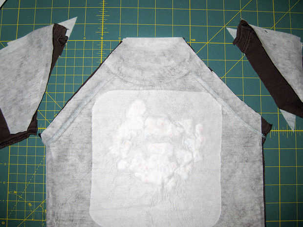 1) quitar las mangas, dejando aproximadamente una pulgada de tela extra. Este es el margen de costura para coser encima de estos bordes. Ahorre al menos una de las mangas para más adelante.
