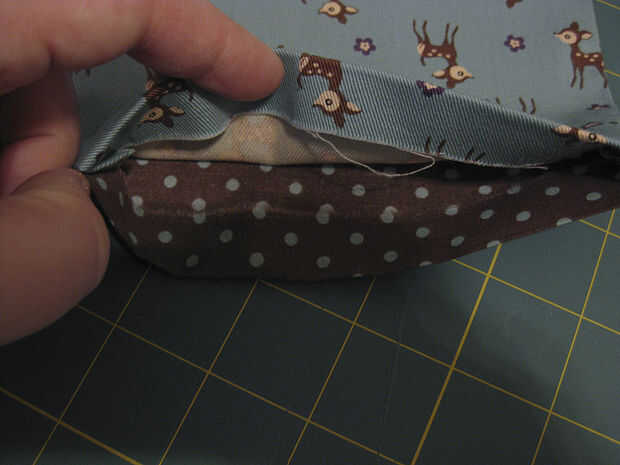 (Lo siento, que no tomar fotos de esta parte!) Pone sus dos piezas de tela del bolsillo derecho lados juntos. Coser alrededor de los lados y en la parte superior. Deje el fondo plegado por ahora. Clip las esquinas, girar a la derecha hacia fuera. Utilice con cuidado las puntas de sus tijeras, un bolígrafo, un palillo o un implemento similar para ayudar a convertir los puntos de las esquinas.