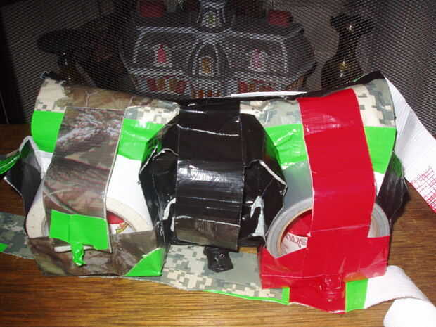 Aquí es el caballero oscuro batman versión fabricada de cinta del conducto sobre todo.Es bastante áspero, pero tal vez te inspirar a alguien. ¡ Disfrute!Paso 1: Ajuste personalizado para tu cabezaLo que necesitarás:algunos cinta adhesiva y una bolsa