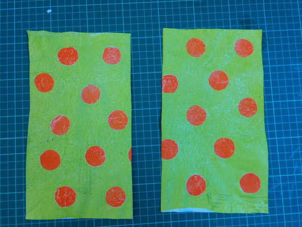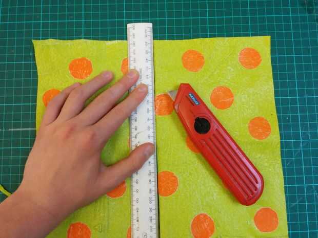 Corte los bordes wonky apagado el material por lo que es un rectángulo. luego cortarla por la mitad del camino que se ajuste a tu código postal