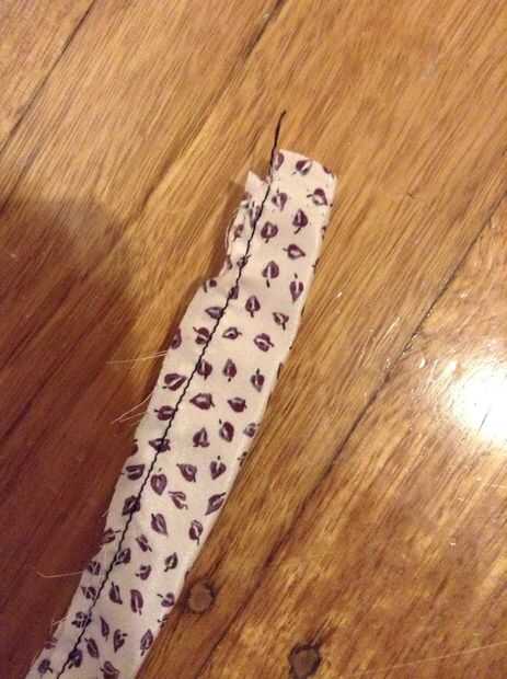 Coser los bordes largos juntos sea el revés de la tela en el exterior.
