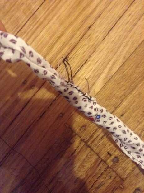 Lo hago ensartando un pedazo largo de cuerda/hilo de rosca a través de la correa toda usando una aguja embotada del ganchillo. Fijar la cuerda firmemente a un lado por atar a hilos sueltos al final. Entonces empiezo a tirar de la cadena a través de la correa desde el otro lado. Puede que necesite introducir el extremo fijo en el orificio en correa para empezar va.