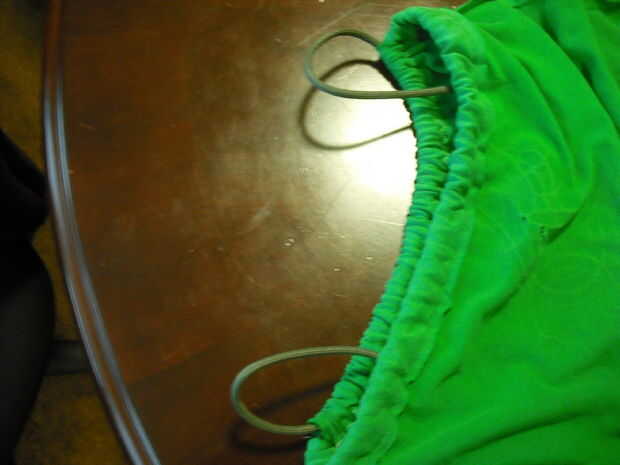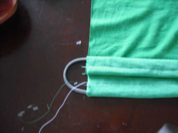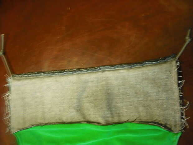 En este punto su bolsa de RCA debe ser revés a los lados sin cosidos con un lazo en la parte superior.