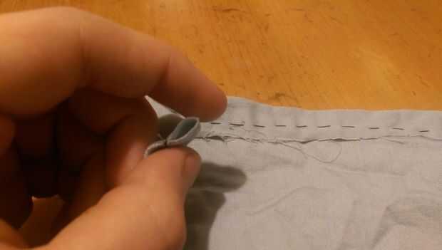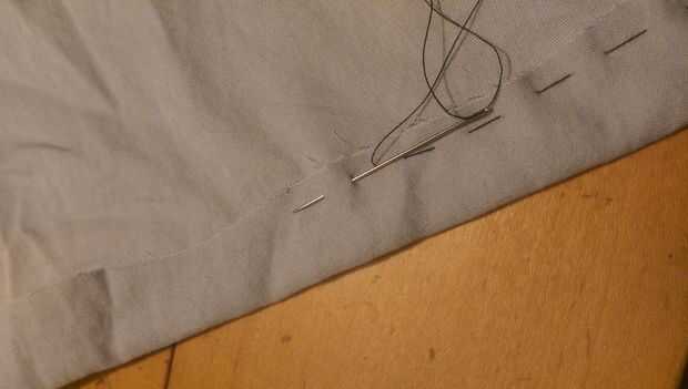 Empezar a correr la aguja dentro y fuera de ambos lados de la tela.
