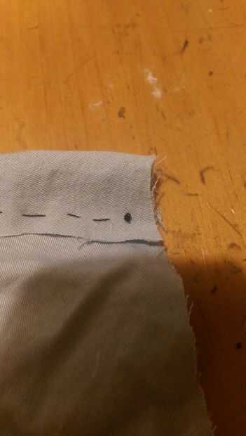 Ahora que tienes un bonito nudo pequeño en el extremo de su hilo que puede comenzar, envíanos la aguja a través de la tela y de que pulgadas doblado. Asegúrese de que el nudo está en la parte que se dobla (lo explicaré más adelante).