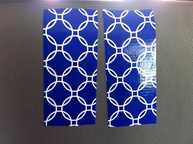 Cortan dos pedazos de pato cinta de cuatro pulgadas de largo y los enfermos en el lado de la bolsa