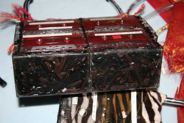 llenar 2 cajas de cinta con cinta - o lo que sea - y glew les whith blanco en la parte inferior de la bolsa