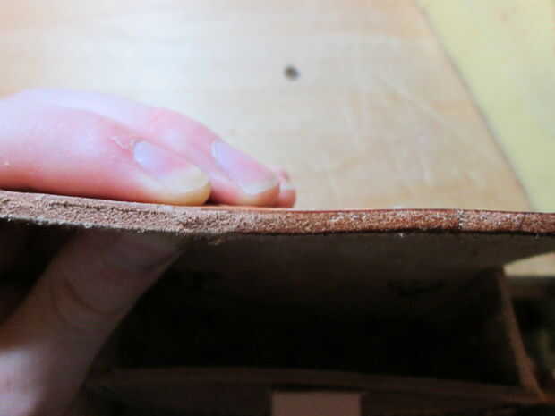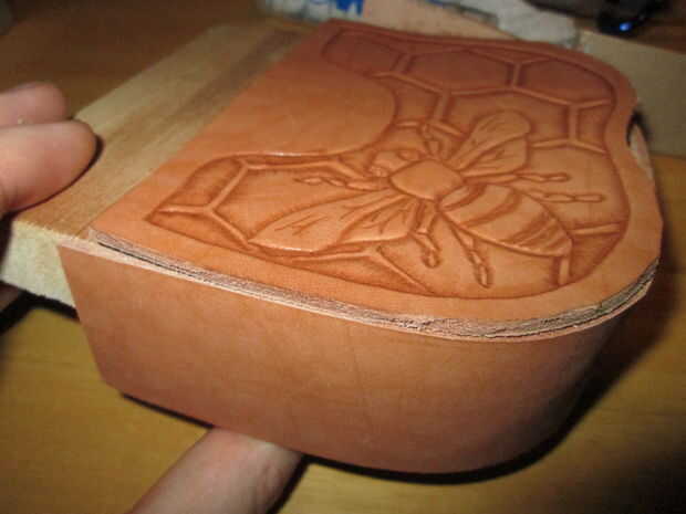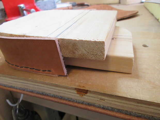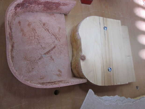 Quitar el cuero de la forma de madera. En realidad, ahora que se ensamblan las piezas, tendrás que quitar la forma de madera de la bolsa! Si el formulario está resultando demasiado apretado para eliminar, trate de deslizar un cuchillo fino por el frente y volver a romper el vínculo que se ha hecho el pegamento. Otro buen truco que pasó me es conducir un tornillo en la parte superior del formulario, entonces utilice como asa para tirar.