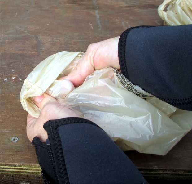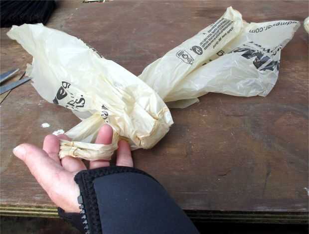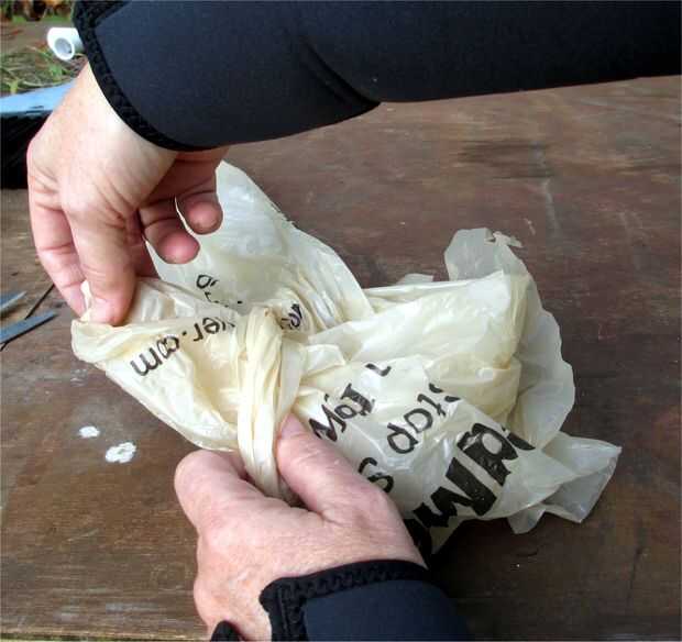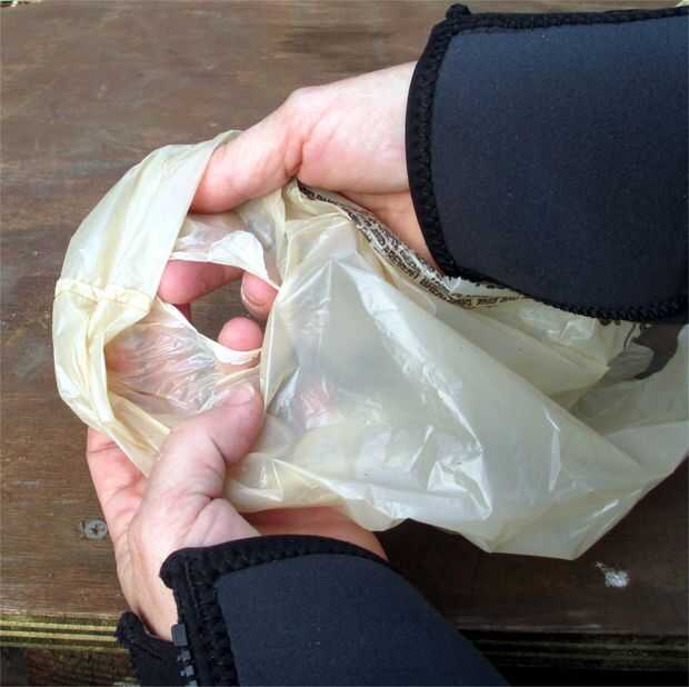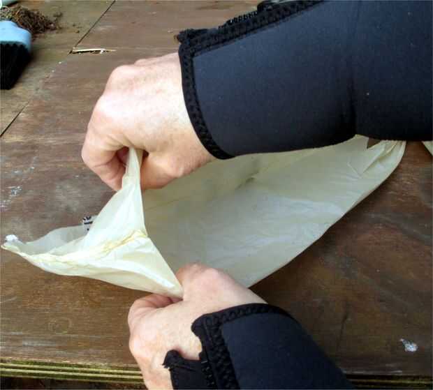Rasgar un agujero minúsculo en el lado cerca de la costura inferior.