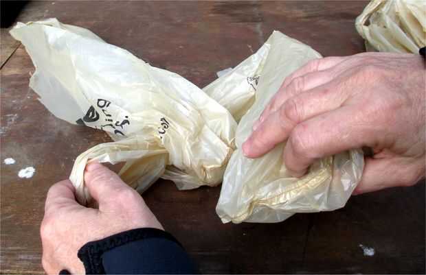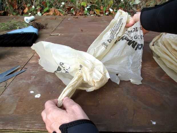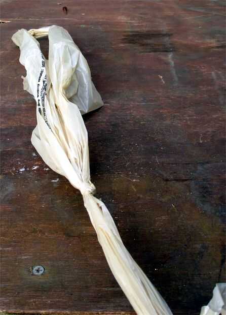 Repita hasta que tenga unos 5 o 6 bolsas de media conexión juntos en un filamento alrededor de 6 pies de largo.