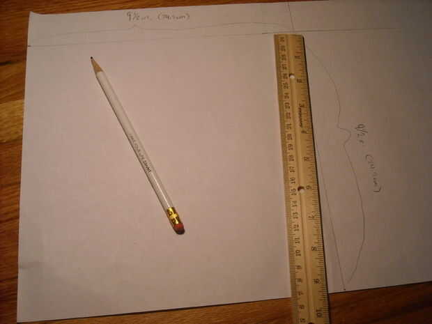 La primera cinta sus trozos de papel junto si necesita entonces usando las esquinas de la hoja de marcan 9 1/2 pulgadas (24,5 cm) hacia arriba verticalmente desde la parte inferior de la hoja en ambos lados para que pueda conectar en el horizantaly línea recta en el papel. luego en la parte inferior de su página marca 9 1/2 pulgadas (24,5 cm) en la parte inferior de la hoja de la horizantaly de la esquina y repetir en la parte superior de la hoja para obtener dos puntos que se puede dibujar una línea vertical hacia arriba y abajo el papel. Connet estas líneas para crear un 9 1/2 pulgada cuadrada de 9 1/2 pulgadas (24,5 cm x 24,5 cm).