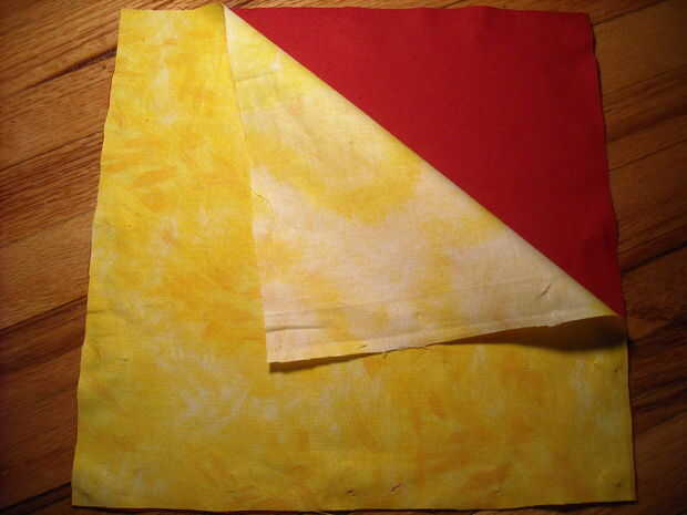 Ponga los lados desea hacia fuera (los lados de la derecha) en el proyecto de fianl (el lado estampado) juntos en el interior, con los lados que quieras en el interior hacia fuera (los lados equivocados).