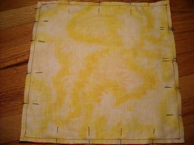 Ahora bien, si no está utilizando una puntada de la máquina de coser un 1/4 pulgadas (aprox. 6 mm) del borde con una espalda fuerte o puntada corriente. Dibujar en las líneas como guía para la costura para asegurar una línea incluso.