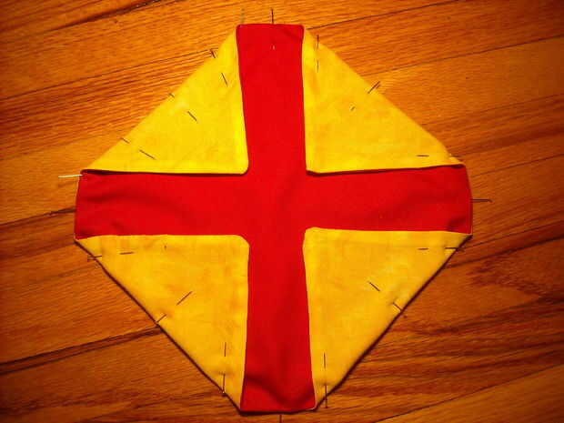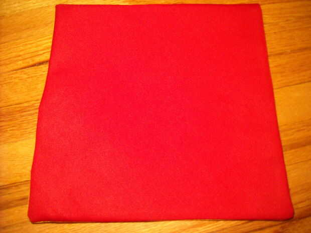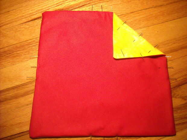 Luego coloque el lado que desee en el exterior hacia arriba hacia usted. Elegí a la tela roja para mi exterior y el amarillo de mi interior.