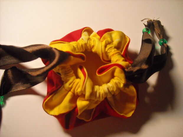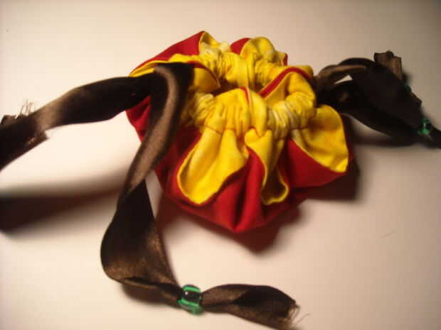 Ahora apriete los lazos para poner todas las esquinas en el centro de la creación de la bolsa.