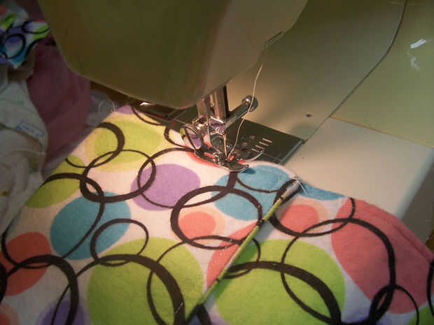 Doble un extremo de la pieza acerca de 4o 5 pulgadas (casi a la mitad del recorrido) y coser los bordes.
