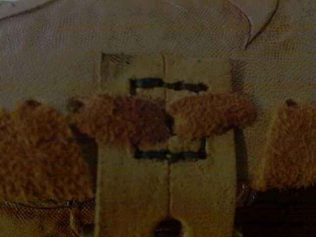 pone 7 x 5 en el pedazo de piel por la áspero hacia arriba cose los agujeros hacia usted, U en forma de piel de venado abajo costura 1\4in de agujeros en el cuero, piel de venado de la cinta de cuero, la cubierta Coloque 7x3in pedazo de cuero en parte áspero abajo patrón utilizando el punzón para empujar a través de la piel de venado y línea de costura de agujeros, una vez alineados uso hilo y aguja coser juntos.