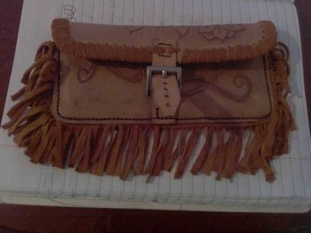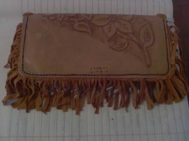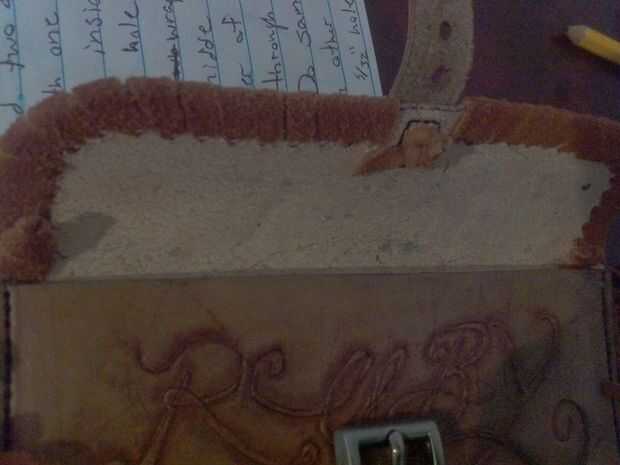 debe salir con una bolsa casi terminado 1\8 sólo agujeros en la parte superior y dos tiras de piel de ciervo 18x1\4in izquierdas.