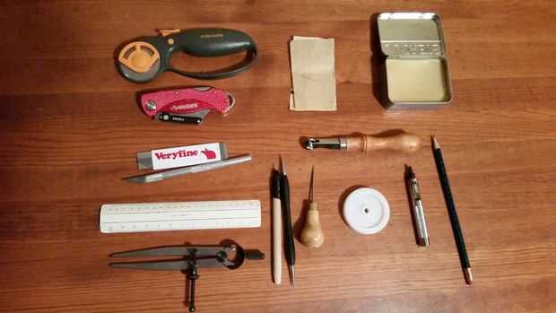 he hecho una bolsa para dinero de mi mujer para Navidad.HERRAMIENTAS-limpiar el área de trabajo-martillo de goma-cuchillo para uso general-Punzón-sellado de herramientas* z-a104, * z-p217, * z-b701, * z-5706-Hueco* 5\32, * 1\8-Cuchillo giratorio-2 es