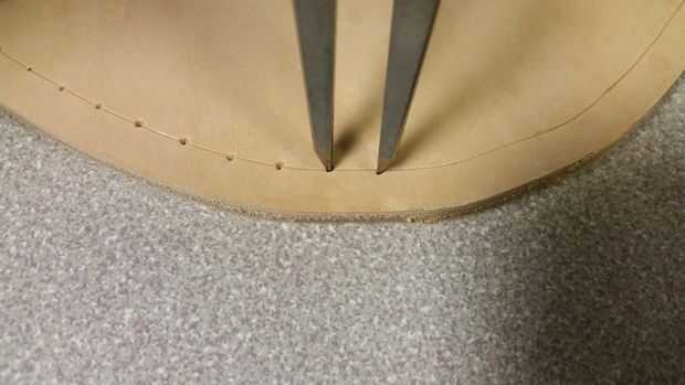 golpe o punch mini para crear agujeros de cordón para su cordón de cuero. Me gusta usar 1/8" mini punch, da suficiente espacio para coser mi encaje pero es firmemente bastante que no resbale.
