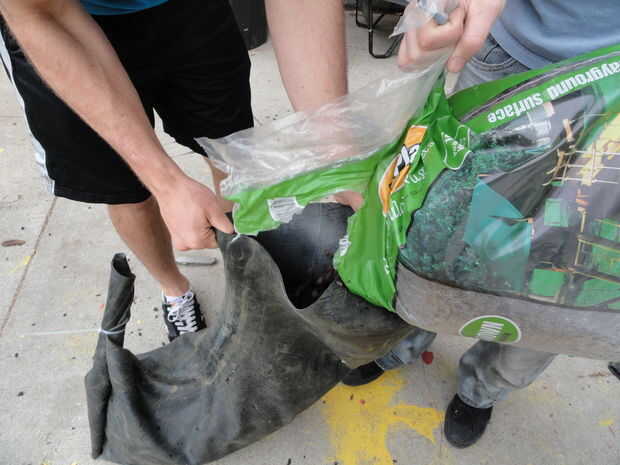Cuando tenga la cantidad correcta de relleno, el extremo abierto para el empate final de tiempo y zip cierre como lo hizo con el otro extremo del rodillo. Ahora tienes una bolsa de formación útil, pero no lo use bastante todavía, aún hay algunas características para agregar!