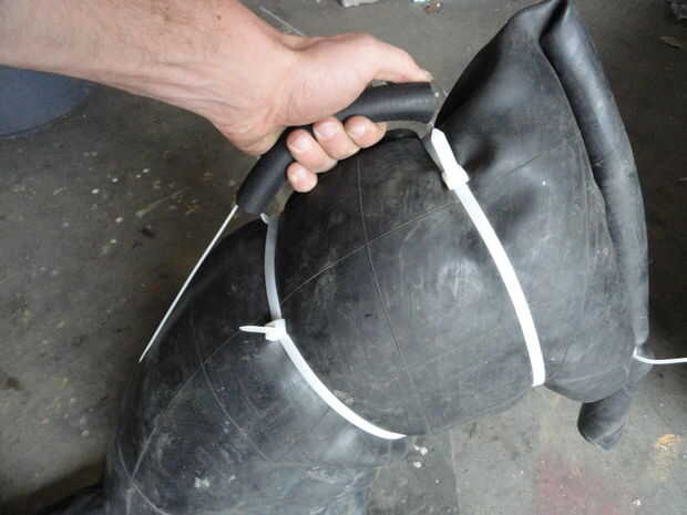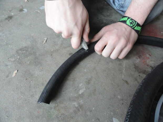 Lo primero que tienes que hacer para las manijas es decidir cuánto quiere a ser, probablemente un poco más ancha que la anchura de su mano cuando un asa de agarre. Corte la manguera del calentador la longitud deseada para cada una de las dos asas.