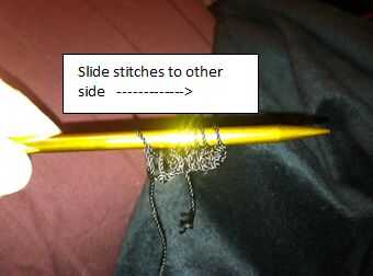 Hacer girar - en su lugar, deslice las puntadas al otro lado de la aguja.