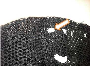 R1: Conectan los extremos de las correas. Tire de las correas uniformemente. Sostiene que la correa termina juntos, introduzca el ganchillo a través de ambos de la primera lazada. YO y dibuje un bucle en el gancho. SC en la primera puntada.