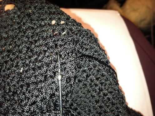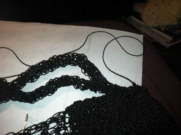 Cerrar las costuras laterales con puntadas de látigo. Terminar y haz un nudo.