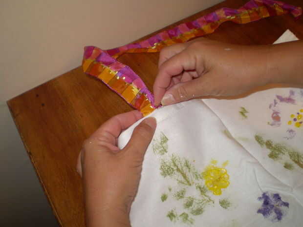 Coser el mango por lo que es incluso en ambos lados. Esto se puede hacer por la máquina pero es un buen momento para enseñar a coser a mano simple.