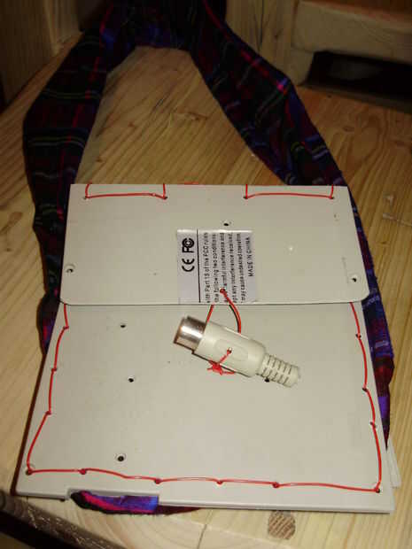 Otra pieza de 10cms de alambre a través de los orificios y luego un extremo por el agujero de la clavija del cable del hilo de rosca. Ate firmemente los extremos. Esta es la palanca para la sujeción.