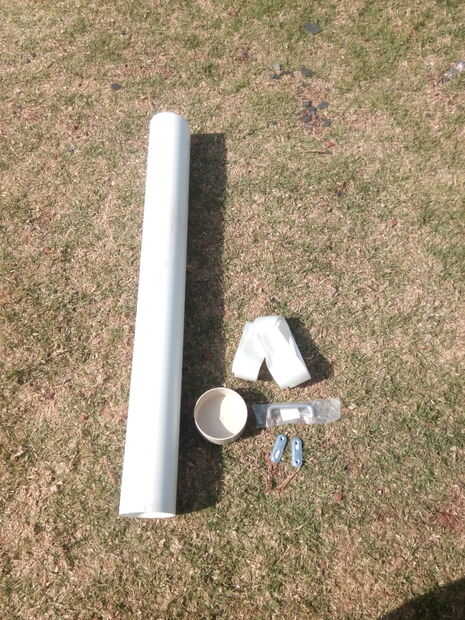 1. tubo de PVC 110mm 800mm de largo 2. tapón de 110mm de PVC 3. cuerda de correa 1000mm 4. 2 pequeños soportes el mismo ancho que la correa. 5. 4 de remaches 4.8mm 6. 4 arandelas M5 7. manija del cajón acero simple.