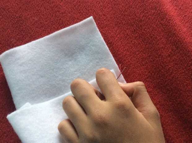 Una vez que han cortado la longitud correcta de la bolsa para ti, tienes que puerca. para ello, tienes que doblar la parte inferior de la tela corte y subir 1/3 de la manera. Y los lados de 2 capas juntas. Ten cuidado. Asegúrese de que esté tan cerca de los lados como sea posible.