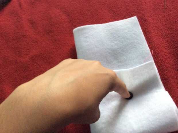 Luego medir la posición de su parte inferior y hacer una hendidura en el mismo lugar en la solapa superior para que el botón se ajusta y sella la bolsa.