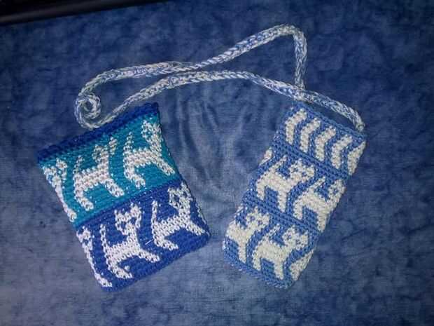 Se trata de dos bolsas de kitty realizadas en crochet de tapiz. Consulte mi Instructable para aprender a crochet de la tapicería.