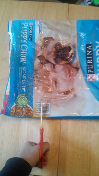 La mejor manera que he encontrado para empezar es cortar la parte inferior y superior de la bolsa.