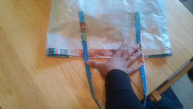 Mi último paso fue agregar las asas a la bolsa.