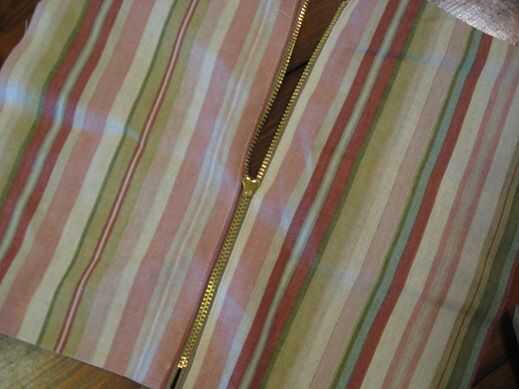 Pulse en 1/4" a lo largo de un lado de cada una de las piezas de revestimiento. Coser el lado equivocado de la cremallera.