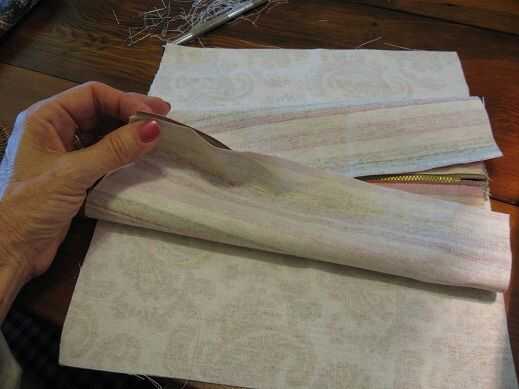 Aplanar el proyecto, fuera de la tela hacia abajo. Junte las piezas de dos forro y coser a lo largo del lado largo. Prensa abierta la costura.