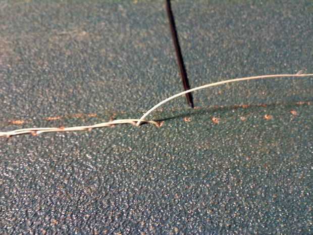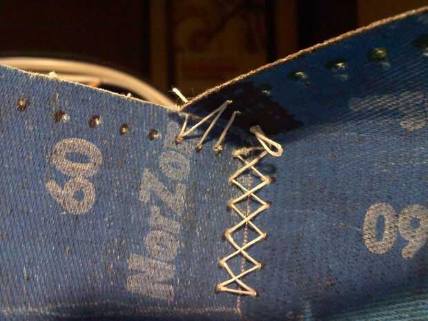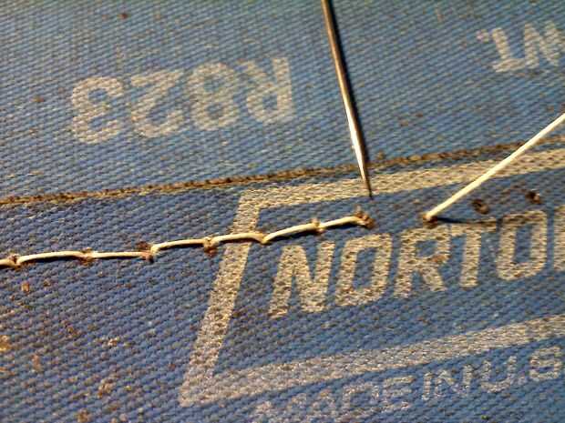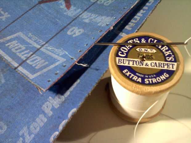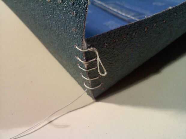 Nota: Imagen 5 es sólo la mitad terminado. las esquinas están mucho mejores con dos puntos de sutura a través de cada par de agujeros.