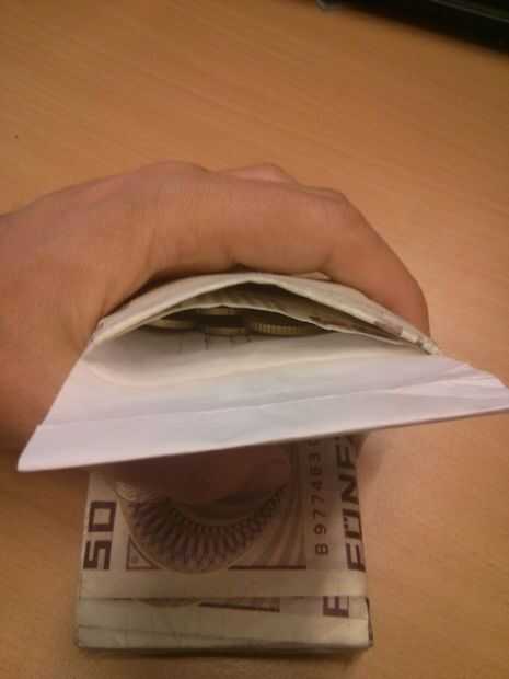 una cartera de un saco viejo. Hay dos variaciones de este. Uno solo tiene la aleta para recibos y dinero en efectivo y el otro tiene una bolsa de monedas y un lugar para una tarjeta de crédito. Para la variante más simple, parar en el paso 4. Para la