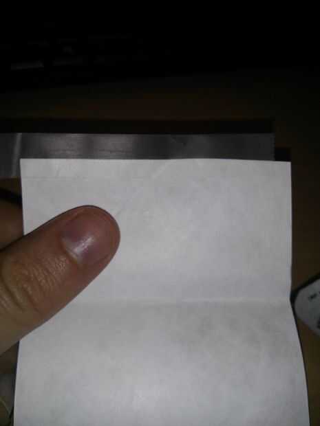 Coloque algunas película adhesiva en el extremo de la cinta en el lado en blanco.
