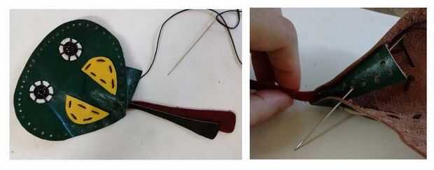 Se puede comenzar colocando los ojos, luego las alas y la cola. Utiliza una simple puntada de funcionamiento o cualquier puntada que usted es cómodo con.