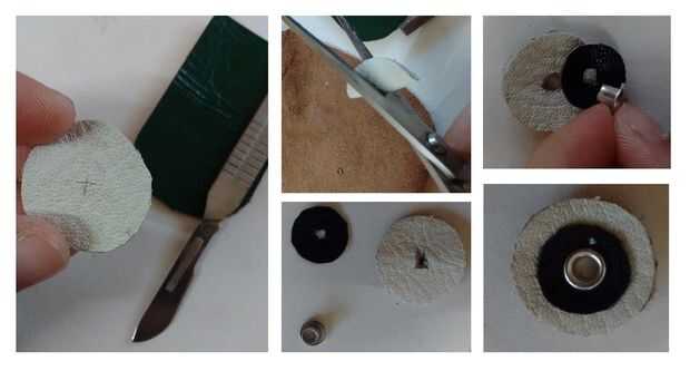 Resultó que el remache no era lo suficientemente larga para servir su propósito como el cuero que se usaba era grueso. Todavía pude usarlo para unir las dos piezas, aunque no se utiliza para unir directamente al cuerpo y así terminé cose los ojos en el cuerpo como en el siguiente paso.
