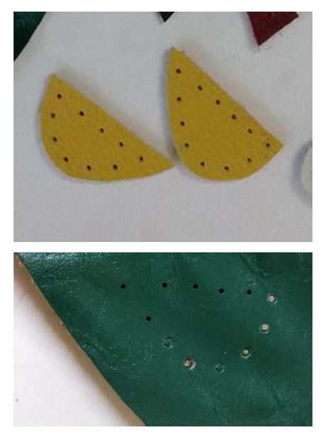 Tomar las alas y perfore agujeros en el borde para coser. Asegúrese de que al menos 5mm del borde y hacer un número de agujeros.