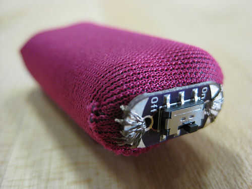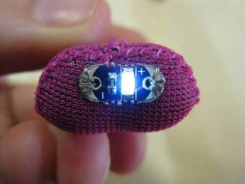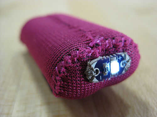esta funda suave de luz de LED es fácil de hacer y funciona con dos pilas AAA. El diseño es super sencillo y se adapta muy bien con los componentes de LilyPad. Aunque también se puede modificar un regular LED y diapositiva interruptor para ser sewable por lazos pequeños en el extremo de los cables de soldadura. La luz es lindo y pequeño y suave pero no realmente lo suficientemente brillante para ser utilizado como una linterna para bicicleta por lo que agradecería sugerencias acerca de qué podría ser utilizado para.