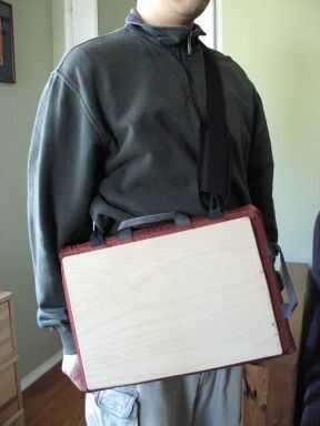 esto es una verdad simple instructivo para hacer un combo portátil bolsa/funda y soporte para las rodillas. El soporte para las rodillas protege mis piernas y basura de calor, y la superficie plana da la mejor ventilación de la laptop. El soporte para las rodillas tuve es manera más grande que necesario para mi pequeña computadora y por supuesto no es portable. Este combo bolsa y soporte para las rodillas funciona muy bien en casa o en el tren, etc.. El soporte para las rodillas también da la protección seria duro cara de bolsa.